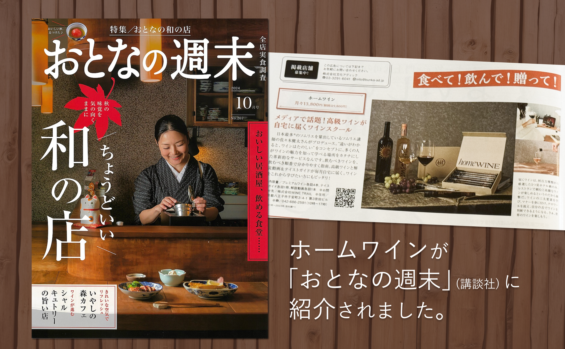 この度2024年9月15日発売のグルメ情報誌『おとなの週末 (講談社)』の10月号にてホームワインをご紹介いただきました。