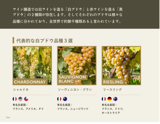 世界を魅了するワインは、選ばれしブドウ品種から。